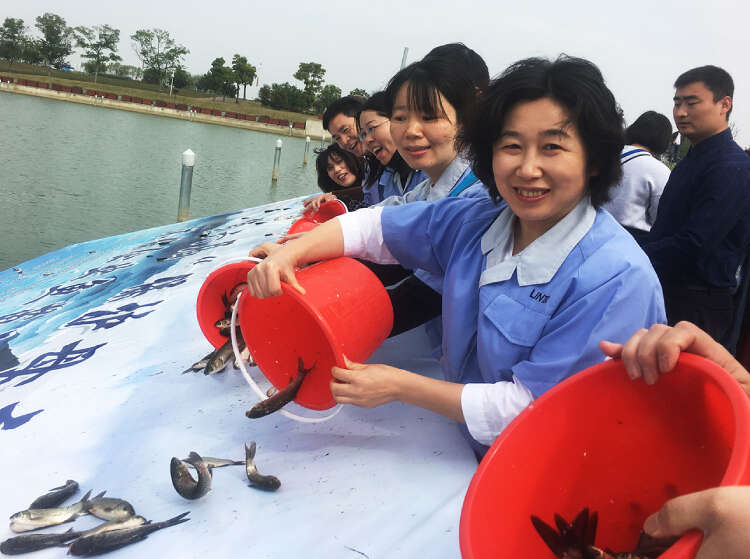 協(xié)會為"保護蘇州太湖水質(zhì)而舉辦的魚苗投放活動"